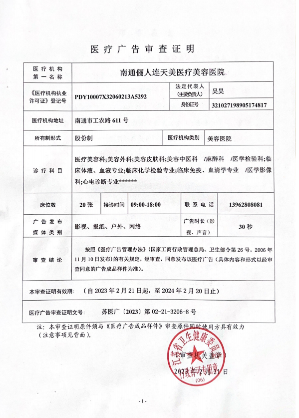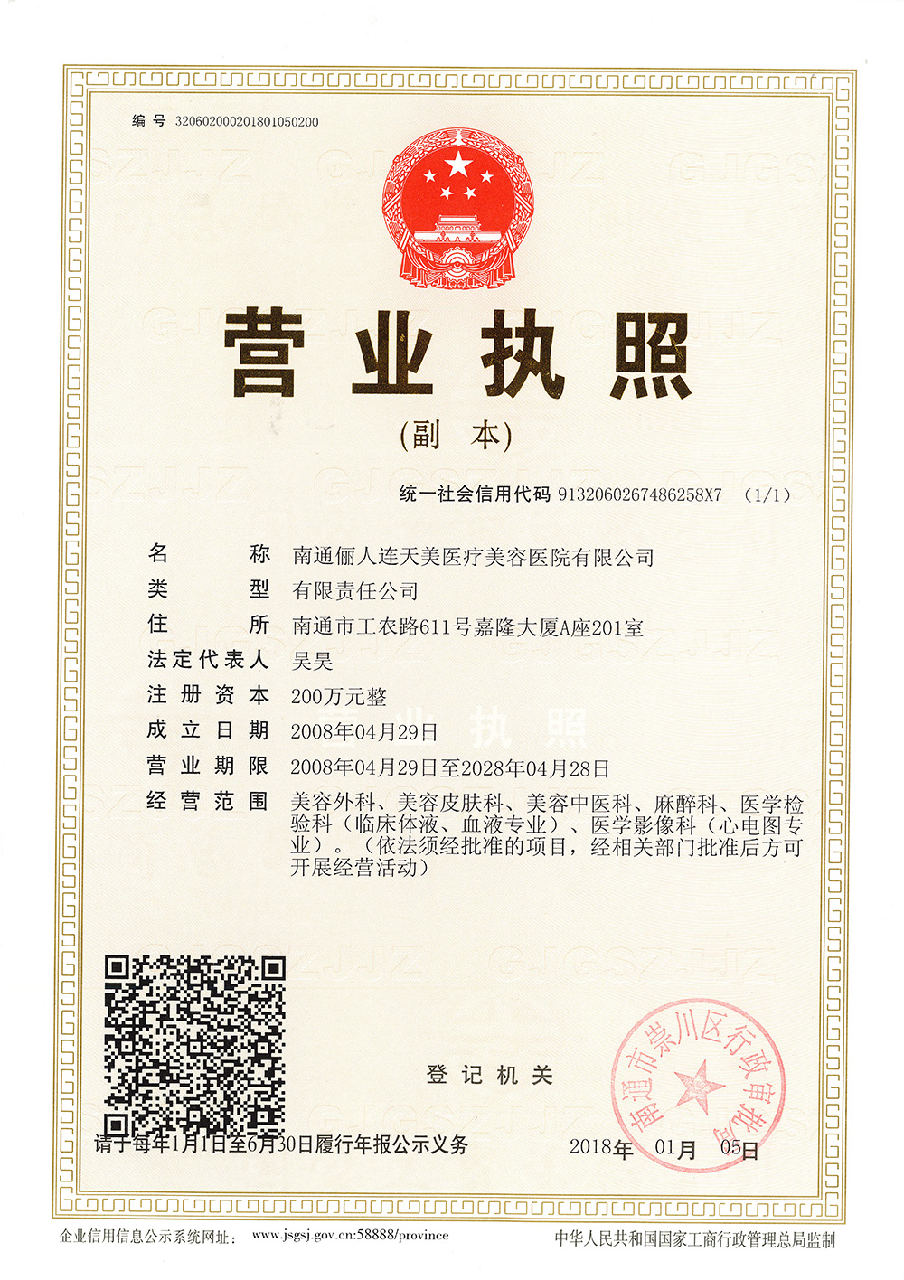 南通儷人連天美醫(yī)療美容醫(yī)院是與著名的醫(yī)療美容集團(tuán)合作建立的醫(yī)院,醫(yī)院提供高品質(zhì)的醫(yī)療美容服務(wù)。2008年,南通儷人連天美醫(yī)療美容醫(yī)院落戶南通,成為由南通衛(wèi)生局審批的專業(yè)醫(yī)療美容醫(yī)院。南通儷人連天美醫(yī)療美容醫(yī)院,特別設(shè)有專業(yè)的整形美容科、皮膚美容科和微創(chuàng)美容科三大科室,致力于為廣大求美者提供全方位的醫(yī)療美容服務(wù)。南通儷人連天美醫(yī)療美容醫(yī)院為求美者建立個(gè)人終生美麗檔案,一對(duì)一進(jìn)行細(xì)致服務(wù)。 11年來,南通儷人連天美醫(yī)療美容醫(yī)院,不斷引進(jìn)先進(jìn)設(shè)備,不斷完善醫(yī)美技術(shù),一批優(yōu)秀、專業(yè)而穩(wěn)定的醫(yī)生團(tuán)隊(duì),為無數(shù)求美者鑄就美麗夢想。
